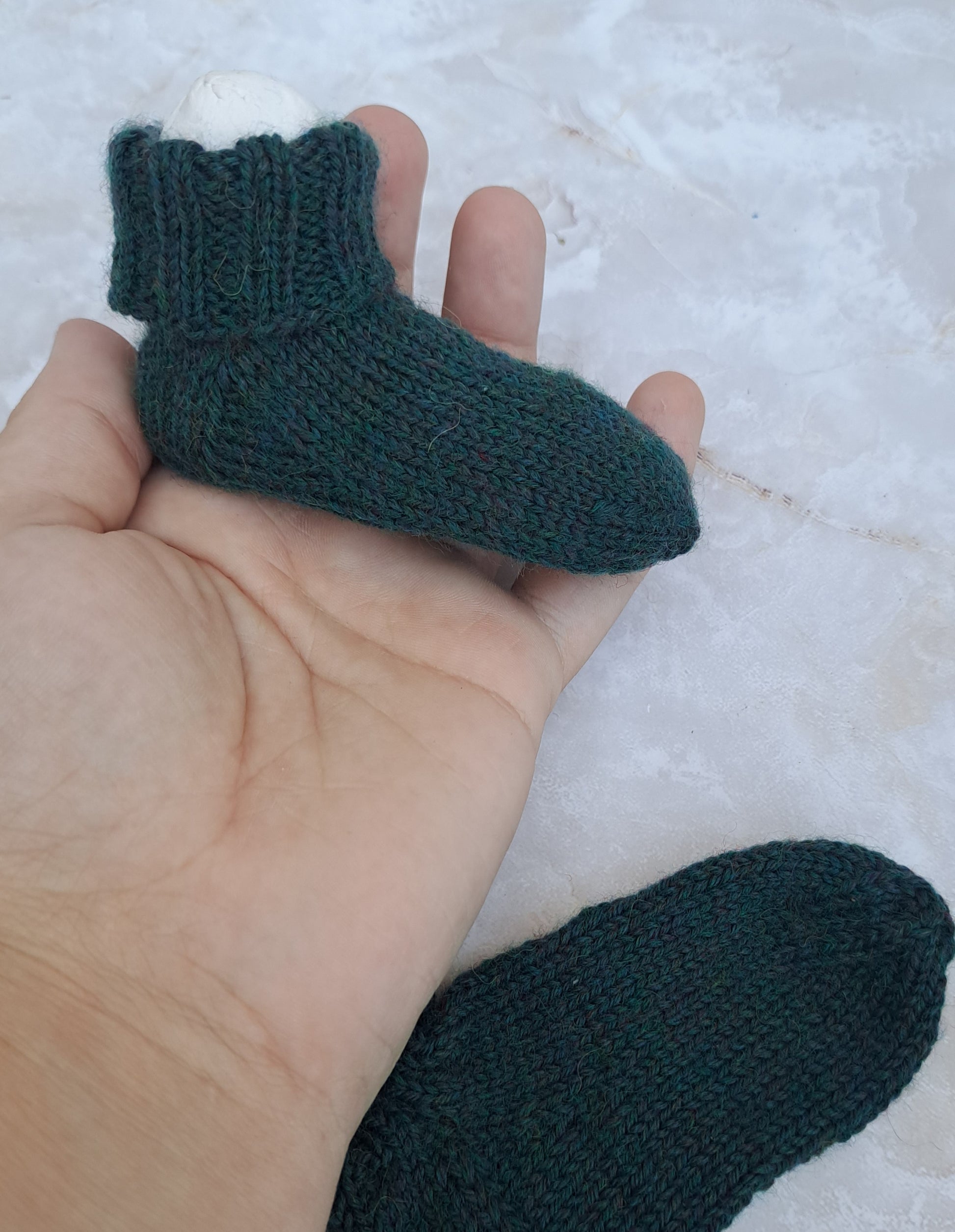 Keep tiny toes cozy with these hand-knit baby socks, perfect for newborns up to 3 months. Made with a soft, durable blend of superwash wool and nylon, these socks are easy to care for--simply toss them in the washer and dryer. Choose from a variety of colors, from gentle pinks and blues to rich greens and purples. Each pair is crafted with love for your little one's comfort.